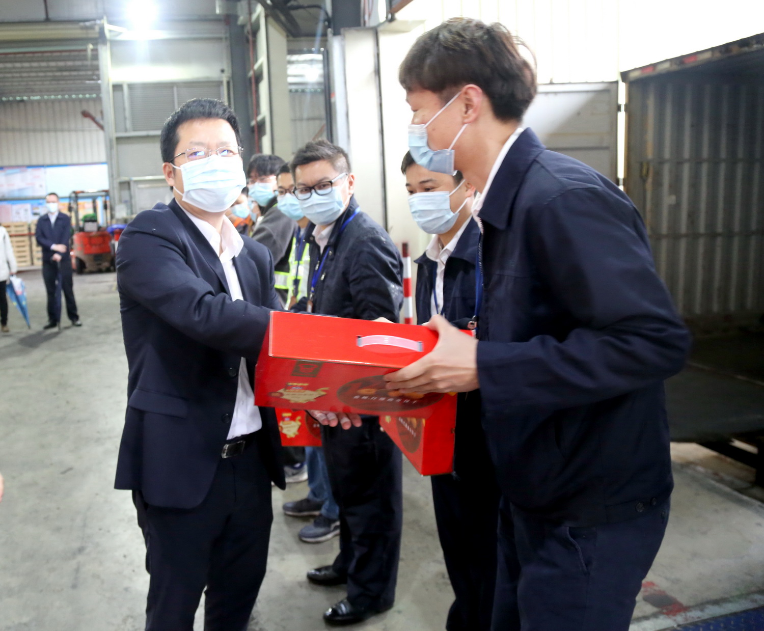 2月10日上午,广州港集团宋小明副总经理到中山港航集团旗下智能仓储公司慰问一线员工,感谢员工的辛勤工作并勉励大家积极努力共创更好业绩。随后宋小明带队先后拜访了中山港海关以及中山海事局。