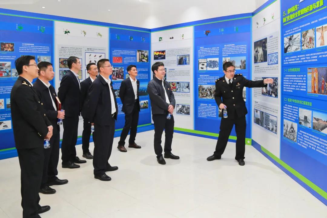 宋小明一行在张展辉的陪同下,走进中山港海关“青篱”党史教育暨国门生物安全科普基地,学习国门生物安全简史,体验海关筑牢口岸防疫防线的点滴;参观中山港海关“青莲之家”,共同重温党史清廉小故事。在座谈交流中,宋小明介绍了广州港集团2021年生产经营情况和南沙港区的发展形势,与海关相关领导共同探讨优化口岸通关环境的方向,为下阶段深化关港合作助力口岸通关环境的提升奠定合作基础。