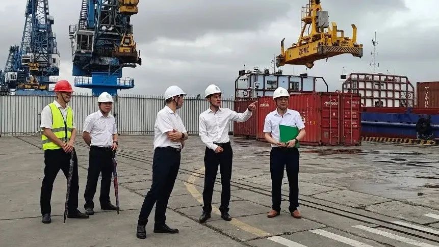 董文泽现场察看了奥马集散仓、码头作业流程,详细了解新能源装卸设备和固定吊机使用以及车辆出入闸效率等情况。现场检查过程中,董文泽强调,在狠抓安全生产的同时要想方设法提高劳动生产率,实现降本增效。一是不断优化码头作业流程,降低集装箱翻箱率。二是发挥码头固定吊机和智能化闸口的优势,减少船舶和车辆在港停时。三是充分利用电动装卸设备,降低单位作业成本,提高经营效益。