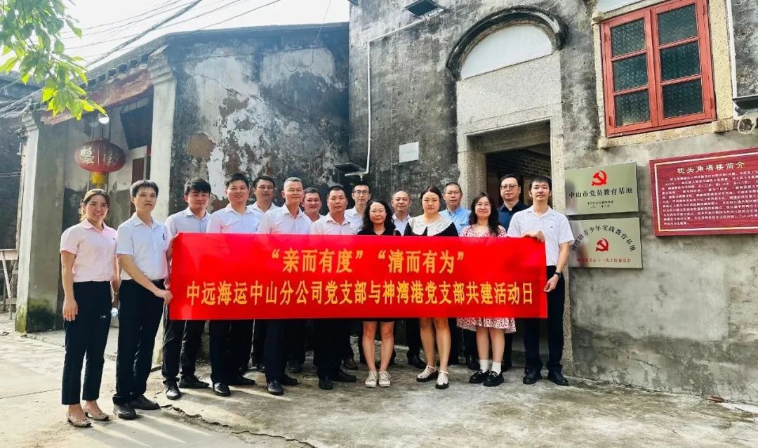 中山港航党委副书记、常务副总经理梁凌华,华南中远海运中山分公司总经理林政煌、党总支部书记余华、党支部书记钟韬,神湾港党支部书记余军和双方的党员干部、入党积极分子、业务骨干等参加了共建活动。