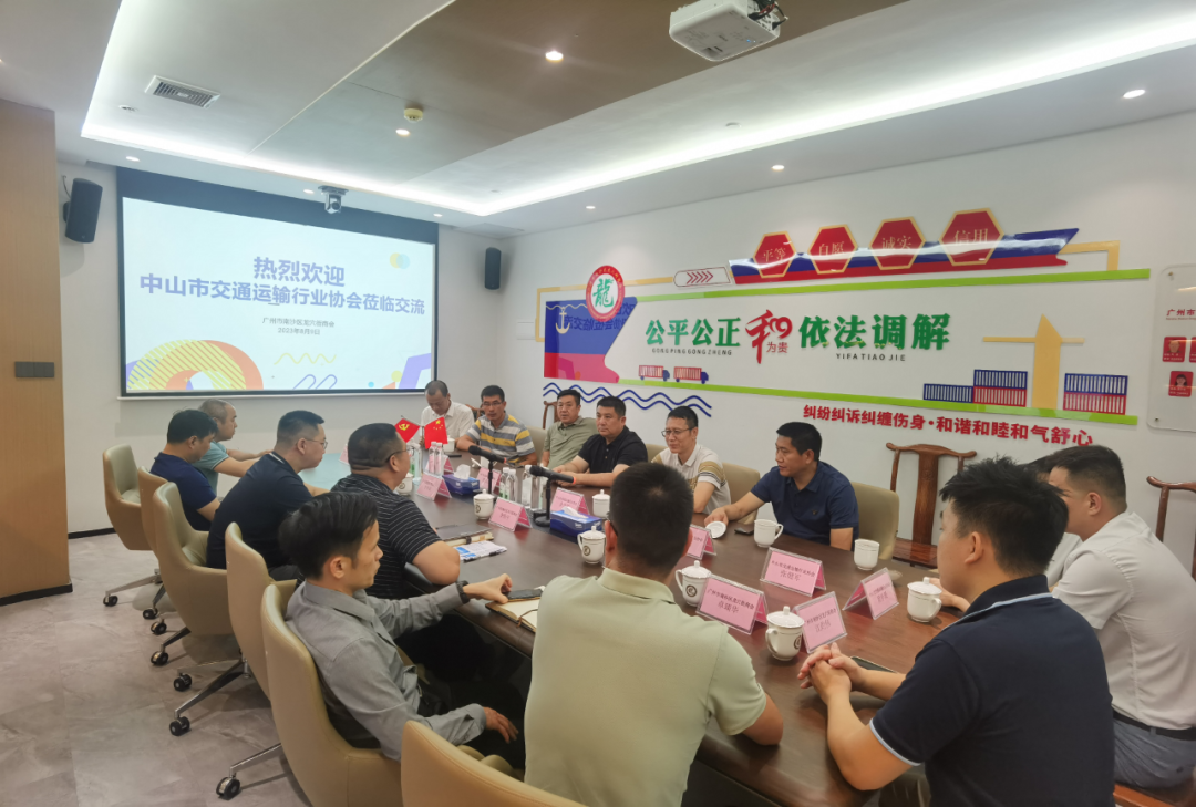 为响应中山市政府“深化广佛中协同发展,助推中山经济高质量发展”的有关号召,促进广中两地商会协会之间的互联互通,中山港航集团发挥集装箱陆路运输龙头带头作用,旗下集运公司作为中山集装箱拖车行业分会(简称“协会”)会长单位,近日与协会副会长和理事单位一行,通过“走出去”的方式,登门拜访广州市南沙区龙穴街商会(简称“商会”),开展互联互学交流活动。