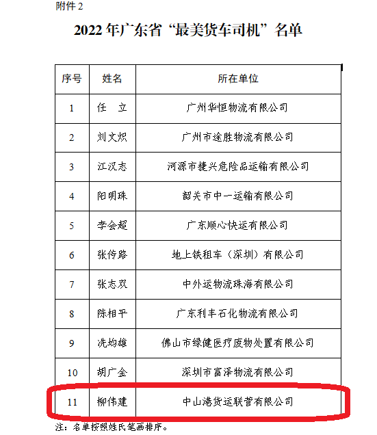 2023年8月23日,广东省交通运输厅、公安厅和总工会联合公布2022年广东省“最美货车司机”名单,柳伟建同志荣获广东省“最美货车司机”称号,全省只有11名货车司机获此殊荣。