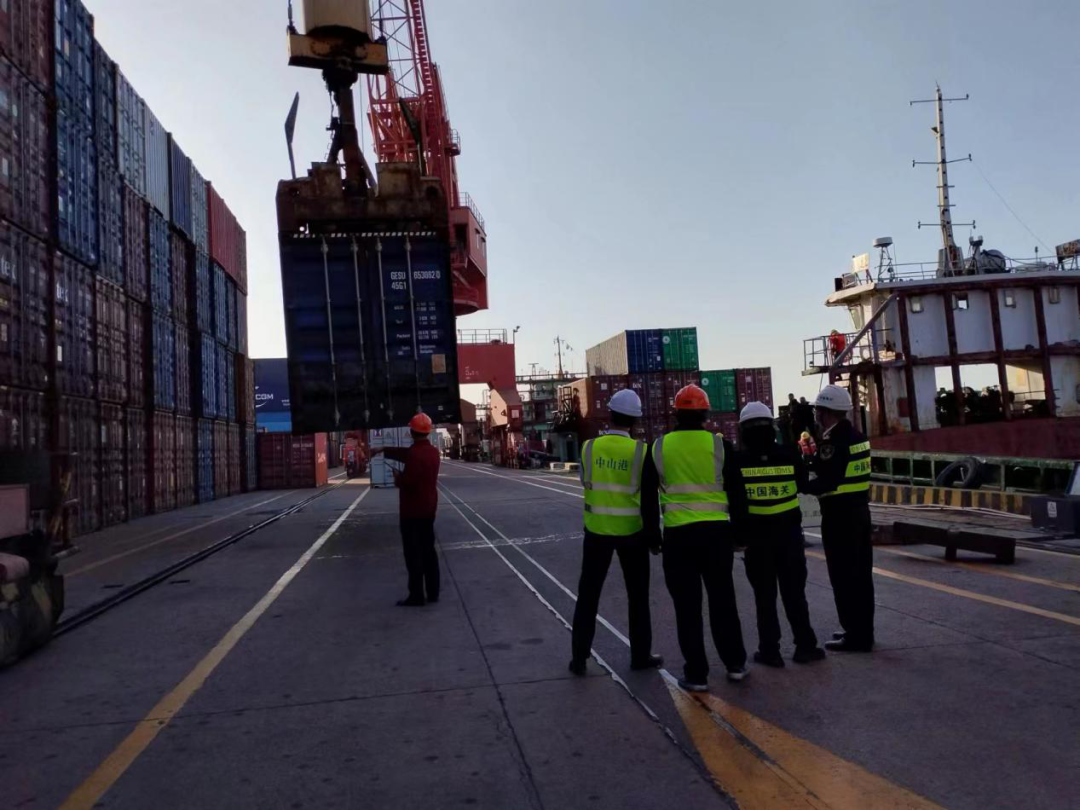 本次应急处置综合情况较为复杂,船舶从香港进口中途,还没有办理边防入境手续,货物是海关监管的货物,且货物受水浸泡后容易出现超重作业以及其它影响安全的一系列问题。困难面前,中山港发挥码头专业特长,认真统筹好业务和操作流程,第一时间将情况向中山港海关、中山港边防检查站等口岸联检部门报告,与联检部门迅速达成一致作业意见,并积极协调配合中航船代为事故船舶办理入境手续,相关监管部门也派出执法人员来现场对入境船舶、船员及货物进行有效监管。