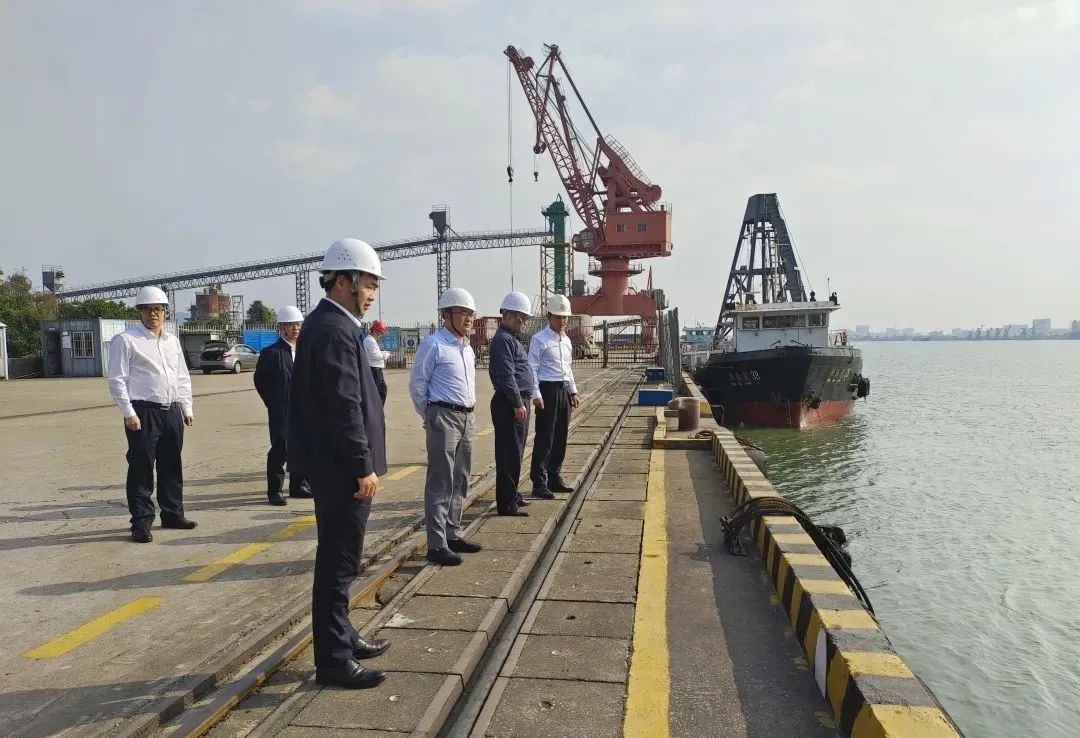 李军武一行人来到神湾港外贸码头前沿,详细了解码头现场生产机械设备使用、码头升级改造计划、货物堆存以及港口业务等情况。指出神湾港要依托区位优势,服务好临港企业,以差异化发展模式拓展新业务,在加强政企合作中为企业发展注入新活力。
