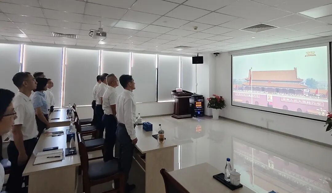 集团公司部室党支部开展“观看抗战胜利日阅兵式”主题党日活动,集团公司党委书记、董事长董文泽等在家党政领导、部室党支部全体党员等近40人集中观看纪念大会直播视频,集中学习习近平总书记在纪念大会上的重要讲话精神。当雄壮的《义勇军进行曲》奏响,全体人员庄严肃穆;随着威武的各军种仪仗队迈着铿锵的步伐走过,先进的武器装备和镇国重器列阵展示,震撼人心的场景让人心潮澎湃,民族自豪感油然而生。