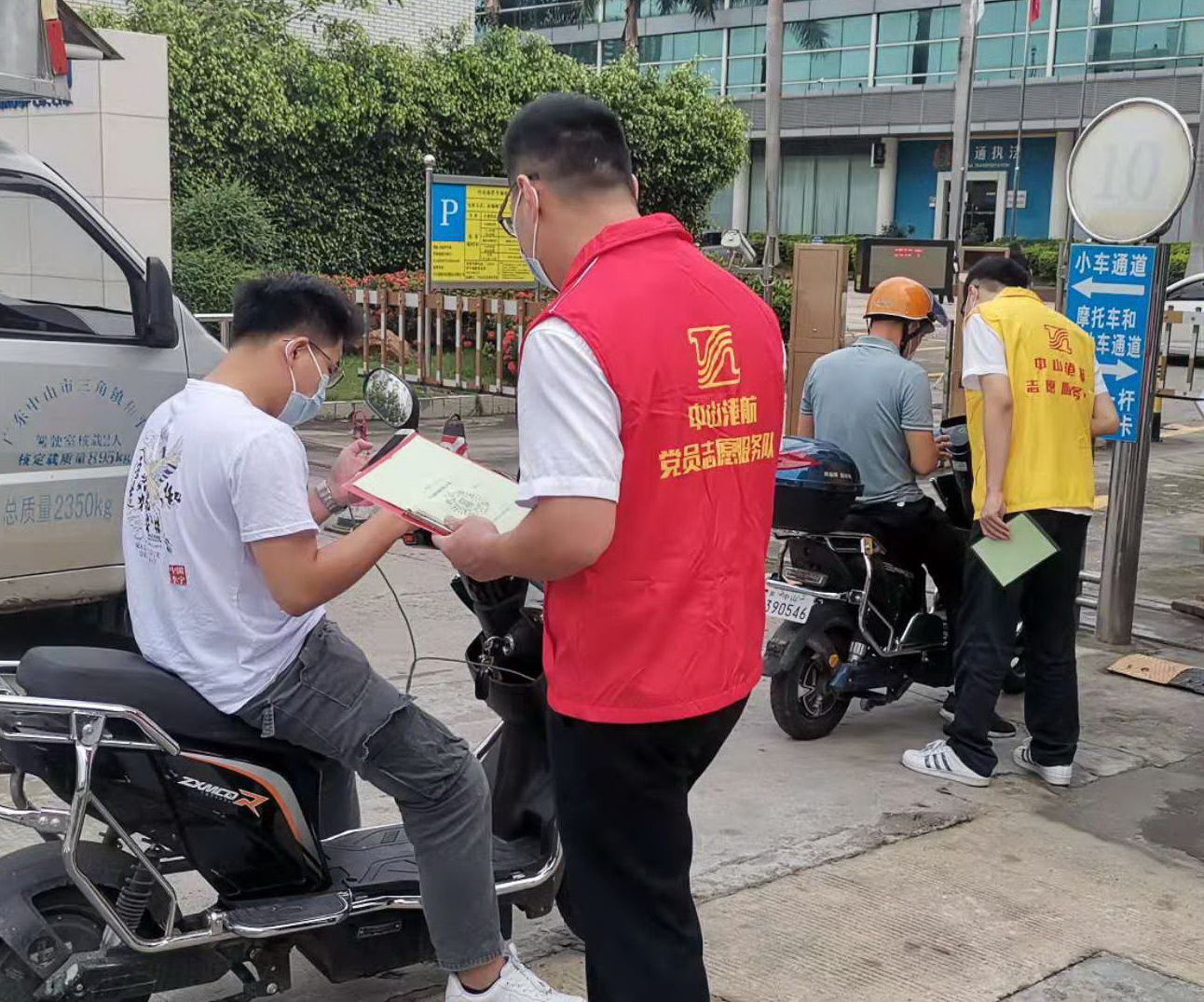 按照疫情防控工作方案,中山港航在总部办公大楼和各区域办公场所、港口码头闸口等重点部位,实行“测温”、“扫码”、“戴口罩”。为了严格落实闸口管理要求,同时又要能使防疫工作更加有效率,不影响正常生产经营,中山港航党团青年突击队挺身而出,在每天上班早高峰时间,协助闸口安保人员对每一位进入闸口的人员进行测温、扫码、核对信息等工作,温馨提醒大家进入公共场所要佩戴好口罩。通过加强闸口管理力量,筑好疫情防控第一道防线。