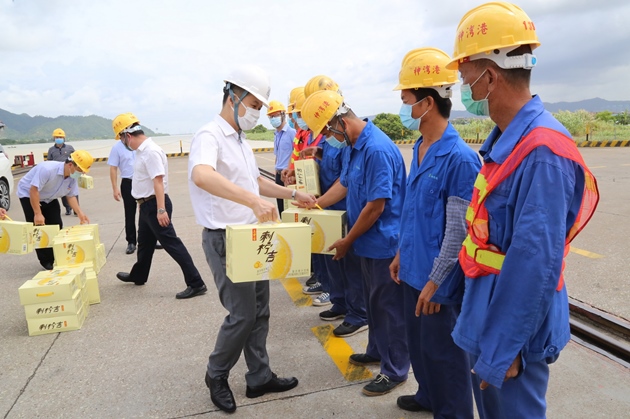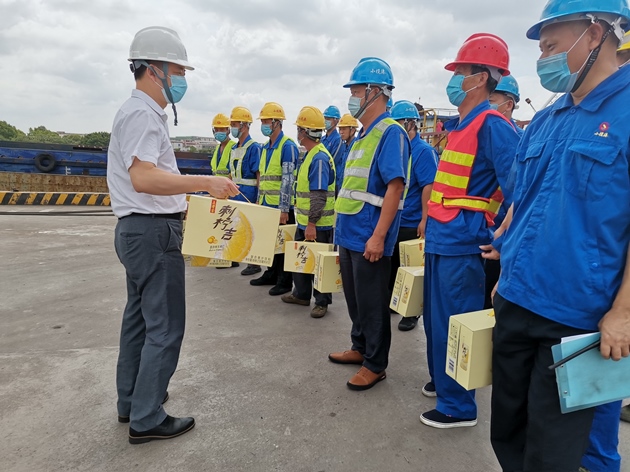 7月8日,集团党委书记、董事长郭勇,总经理陈敬忠,副总经理阮杰航,财务总监梁凌华等领导,分别前往中山港、小榄港、神湾港、港航集运和智能仓储公司等基层生产单位,进行年中安全环保检查,并在高温天气下慰问一线作业员工。