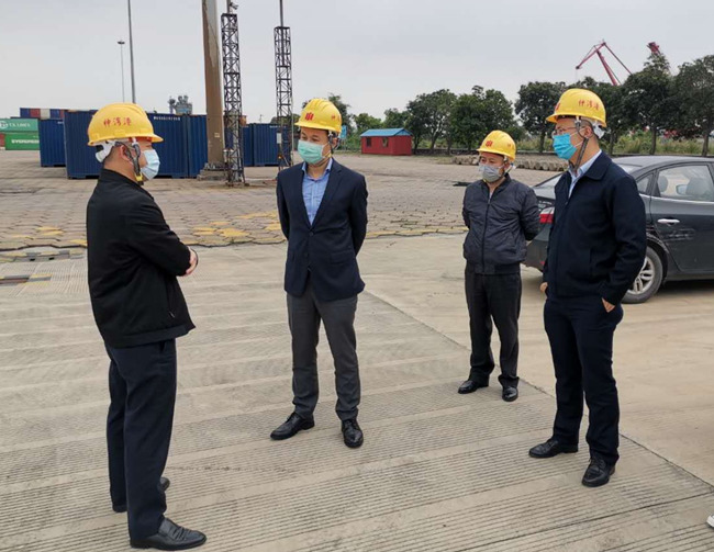 郭勇一行在神湾港作业现场详细了解了码头生产和建设情况,并对相关工作提出指导意见。神湾港领导班子汇报了疫情防控、经营管理、安全环保等方面工作情况,大家重点针对货源单薄、码头建设利用不到位、如何开拓新市场等问题,探讨解决神湾港当前存在的困难和历史遗留问题。